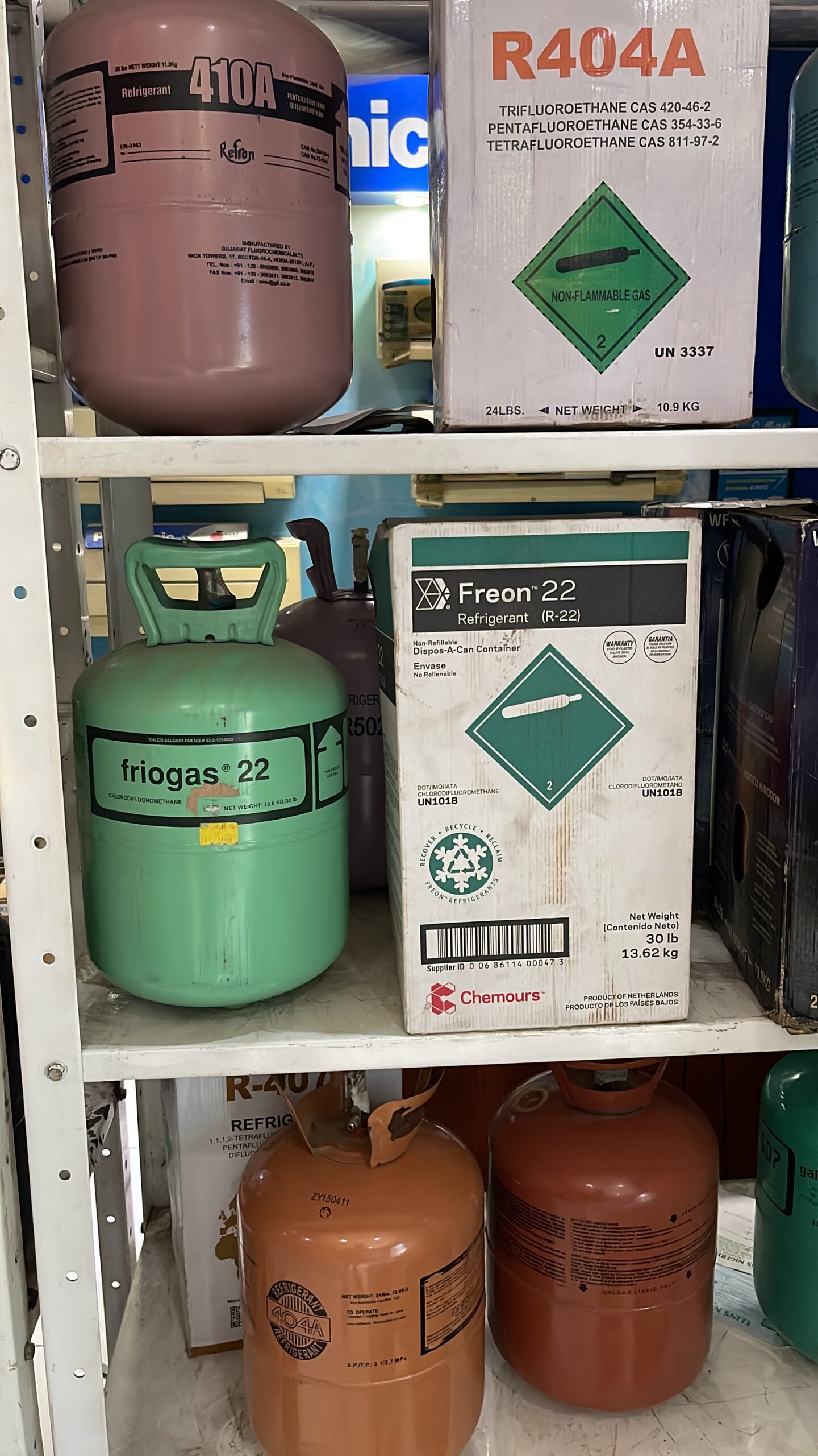Technical Description: Freon™ R-410A is the modern industry-standard, zero ODP, high-efficiency HFC refrigerant for new residential and commercial air conditioning and heat pump systems. It operates at significantly higher pressure and offers higher cooling capacity than R-22. Crucial: R-410A is not a retrofit for R-22 systems and must only be used in equipment specifically designed for it. It is a blend and must be charged in the liquid phase. Requires Polyolester (POE) lubricant. Packaging & Logistics: Net Weight: 11.3 kg (25 lb) Gross Weight (Full Cylinder): Approx. 15.0 kg – 15.5 kg (33 – 34 lbs) Estimated Dimensions: ≈25.4 cm (10 in)×40 cm (16 in) (Diameter × Height) Primary Applications (Nigeria/West Africa): • New Residential AC: Modern split units, multi-split systems, and window units. • Light Commercial AC: New-generation commercial package units and rooftop units. • Heat Pumps: High-efficiency heat pump systems designed for R-410A.